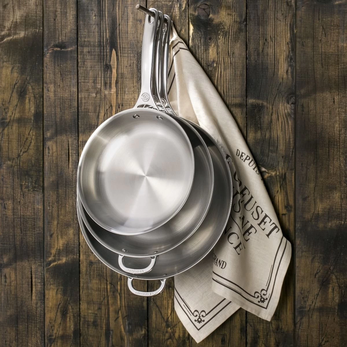 Le Creuset is renowned for its beautiful European stoneware. This line of stainless steel represents the same stunning craftsmanship and lifetime durability. The Le Creuset 12.5″ Fry Pan can hold up to every day use and makes a wonderful housewarming or wedding gift.