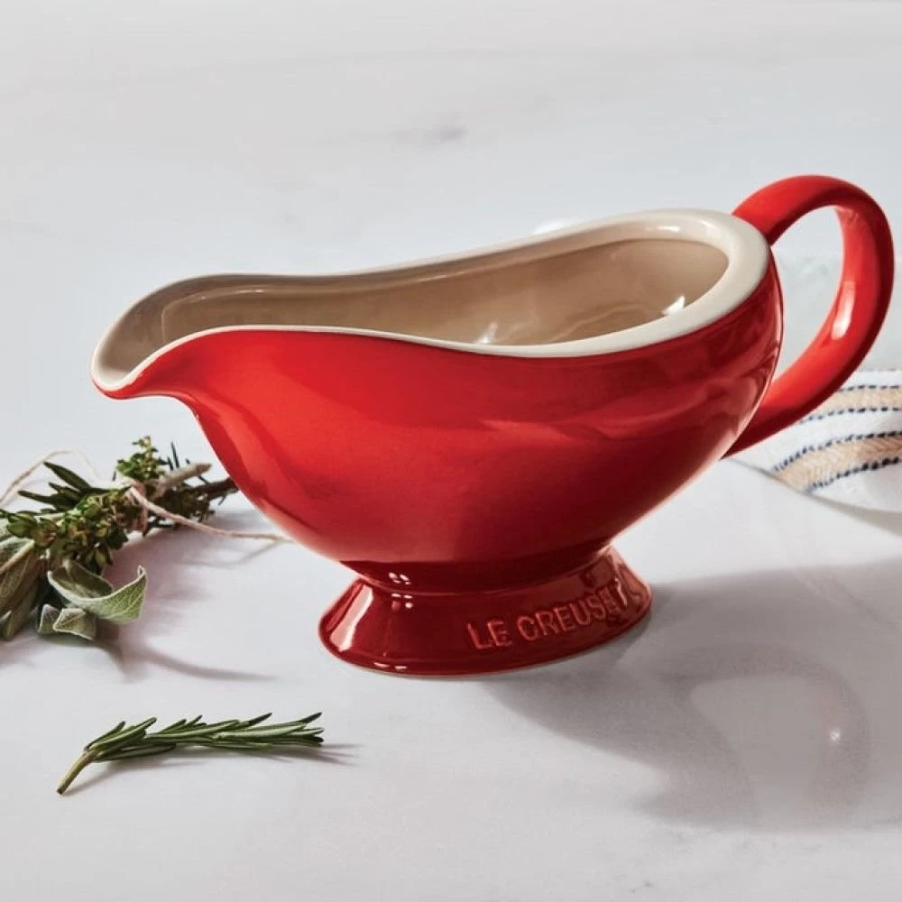 Le Creuset 16oz Heritage Stoneware Gravy Boat – Cerise/Cherry Red Features: