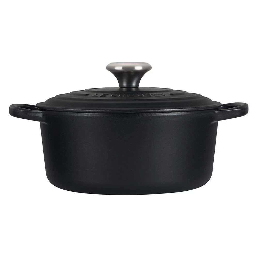 Surprise the whole family with a hearty roast made tender in Le Creuset’s moisture-retaining 3.5-Quart Round Dutch Oven in Licorice from the Signature Series. This beautiful round Dutch oven stands out with its beautiful chip-resistant enamel that lets you enjoy its beauty and quality for years to come. The modern textured design & sleek sophisticated matte black finish coordinates well with other Le Creuset cookware pieces in the Licorice Collection or mix & match with any other Le Creuset color collection for a bold look.