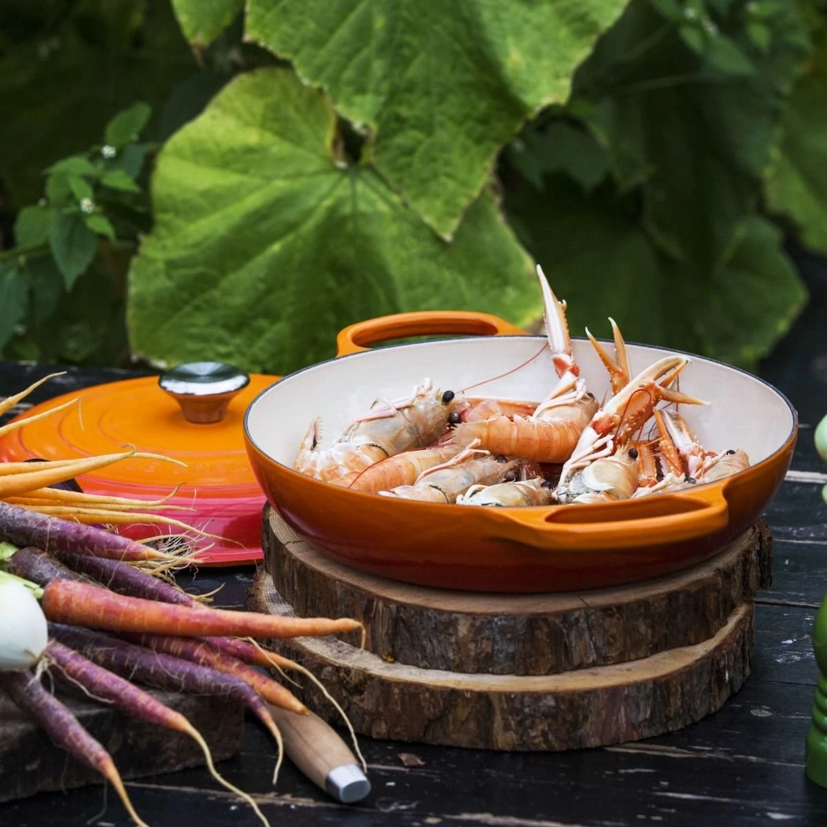 Le Creuset Cast Iron Flame Orange Braiser with Stainless Steel Knob (LS2532-302SS) Features: