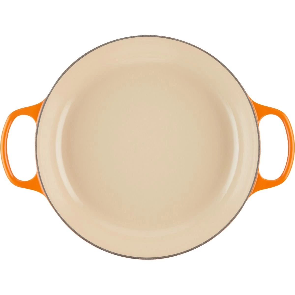 - Sand-colored interior enamel makes it easy to monitor food as it cooks