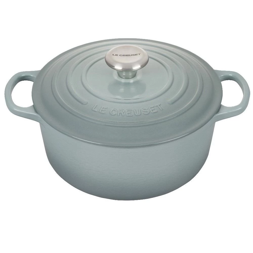 Le Creuset 4.5 Qt. Round Signature Dutch Oven with Stainless Steel Knob (Sea Salt) Features: