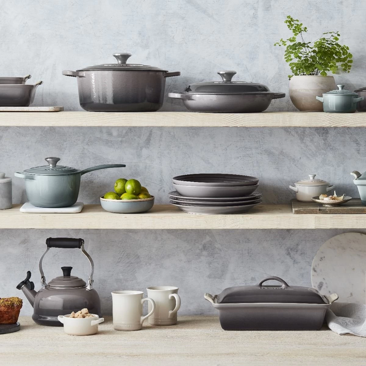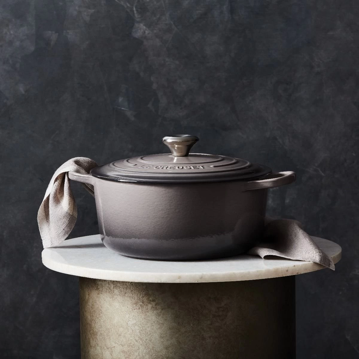 The 5.5qt Le Creuset Cast Iron Dutch Oven is made of oven safe enameled cast iron offered in a variety of colors. This Oyster Grey enameled Le Creuset Signature Round French Oven has a clean and classic style all its own. Like all Le Creuset enameled cast iron cookware it is recommended that you hand wash, but this french oven is dishwasher safe making clean up easy.