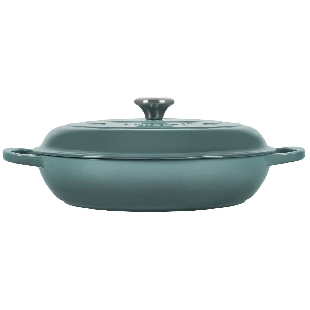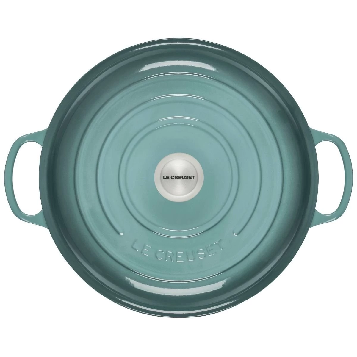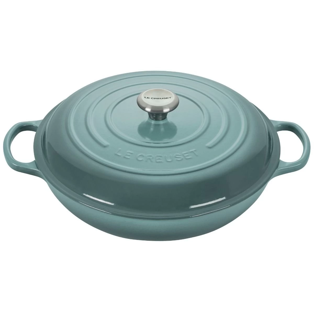 Le Creuset 5 Qt. Signature Enameled Cast Iron Braiser with Stainless Steel Knob (Sea Salt) Features: