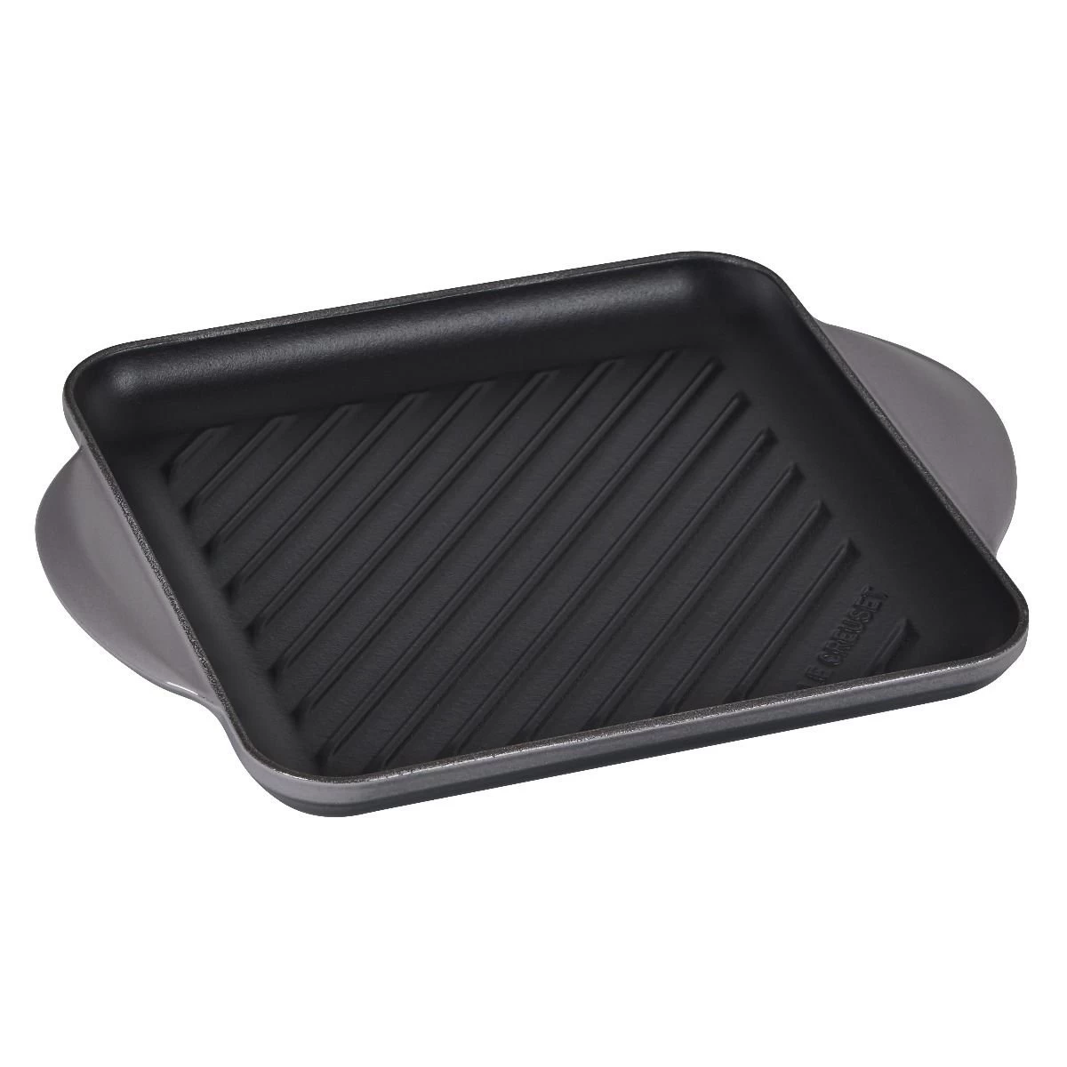 Le Creuset 9.5″ Square Signature Enameled Cast Iron Grill Pan (Oyster Grey) Features: