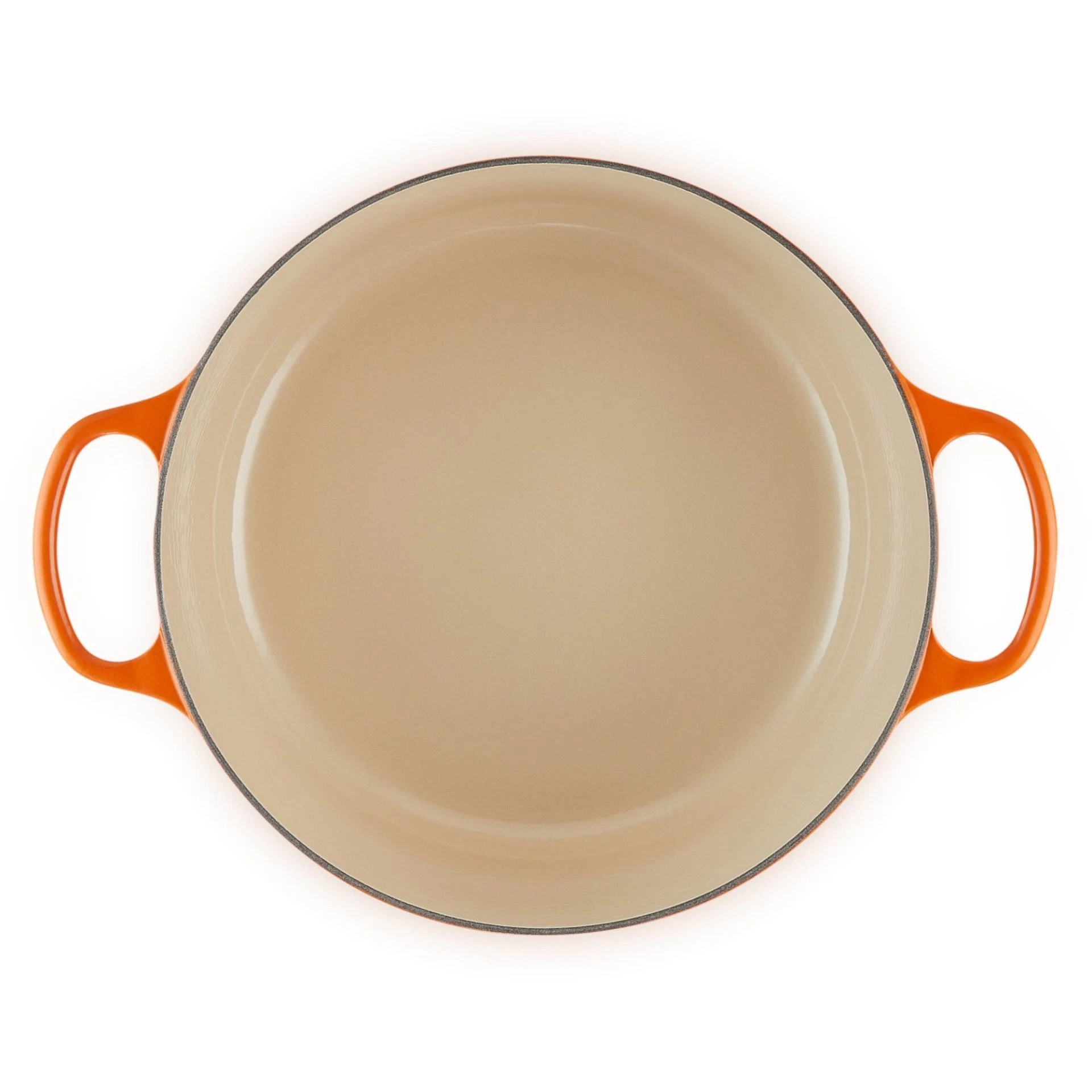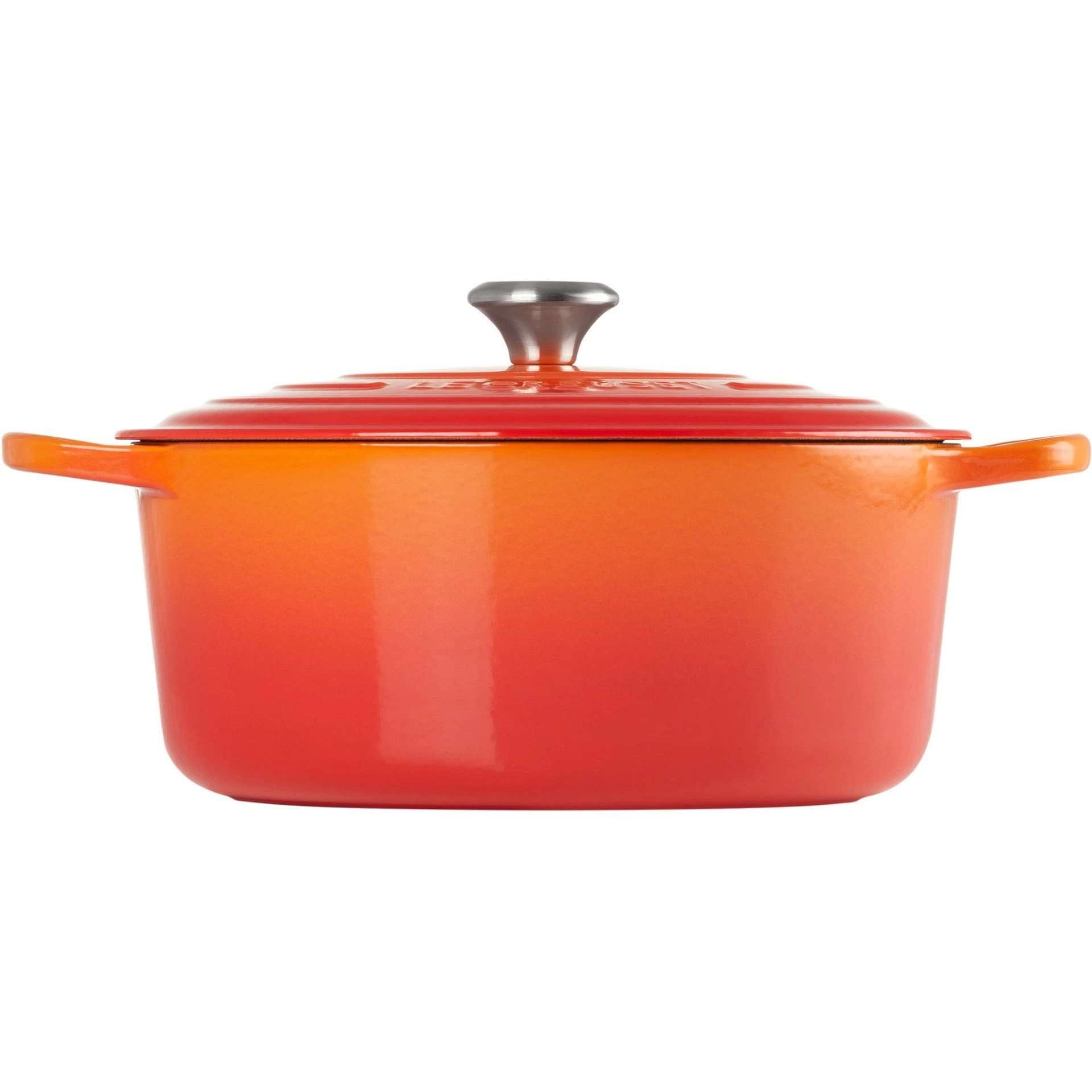Le Creuset 9 Qt. Round Signature Dutch Oven with Stainless Steel Knob (Flame Orange) Features: