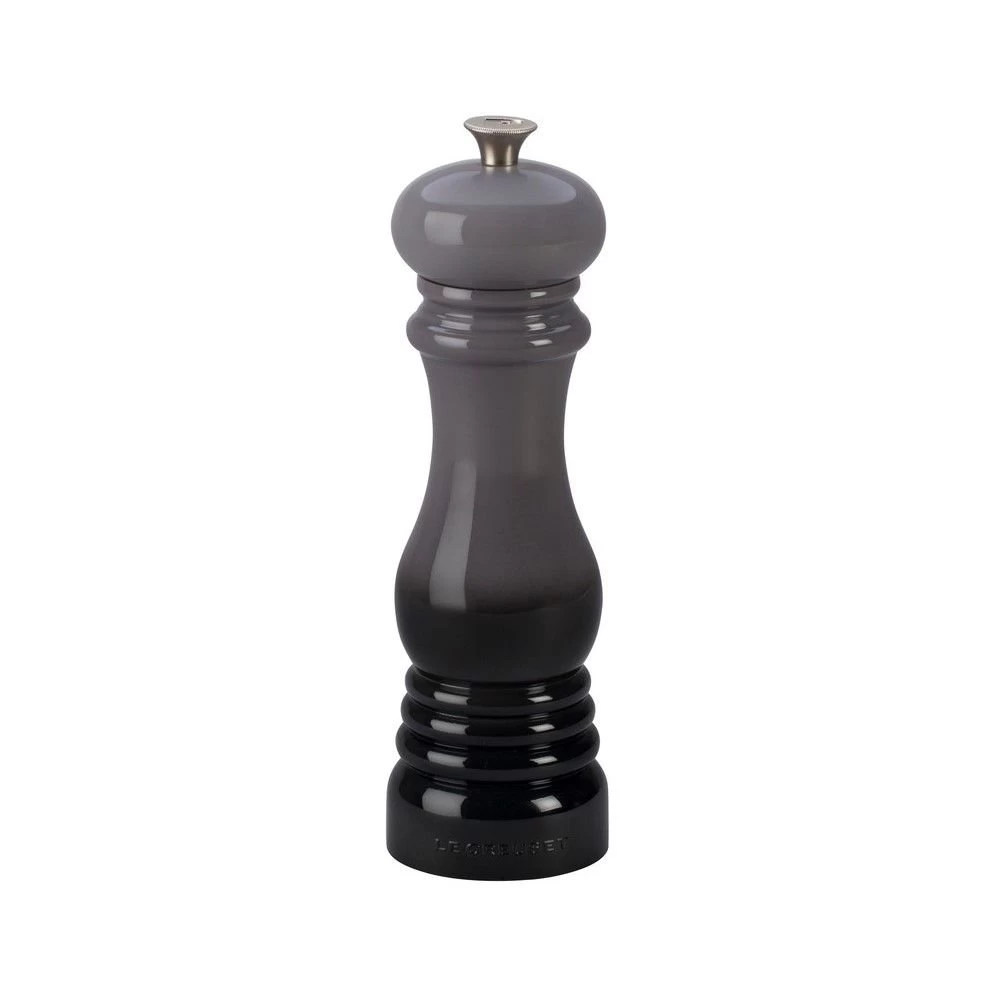 - Le Creuset Pepper Mill | Oyster Grey – Don’t limit your recipes with pre-ground pepper; instead, add real flavor with freshly cracked pepper using this Pepper Mill by Le Creuset! This classically French-designed mill combines an iconic silhouette and a modern ceramic grinding mechanism. Unlike most grinding mechanisms, ceramic is both strong enough to grind pepper and impervious to the corrosive quality of salt. Le Creuset has designed this 8” mill with a high-capacity chamber—it holds over a ¼ cup of peppercorns—so you can grind more and refill less!