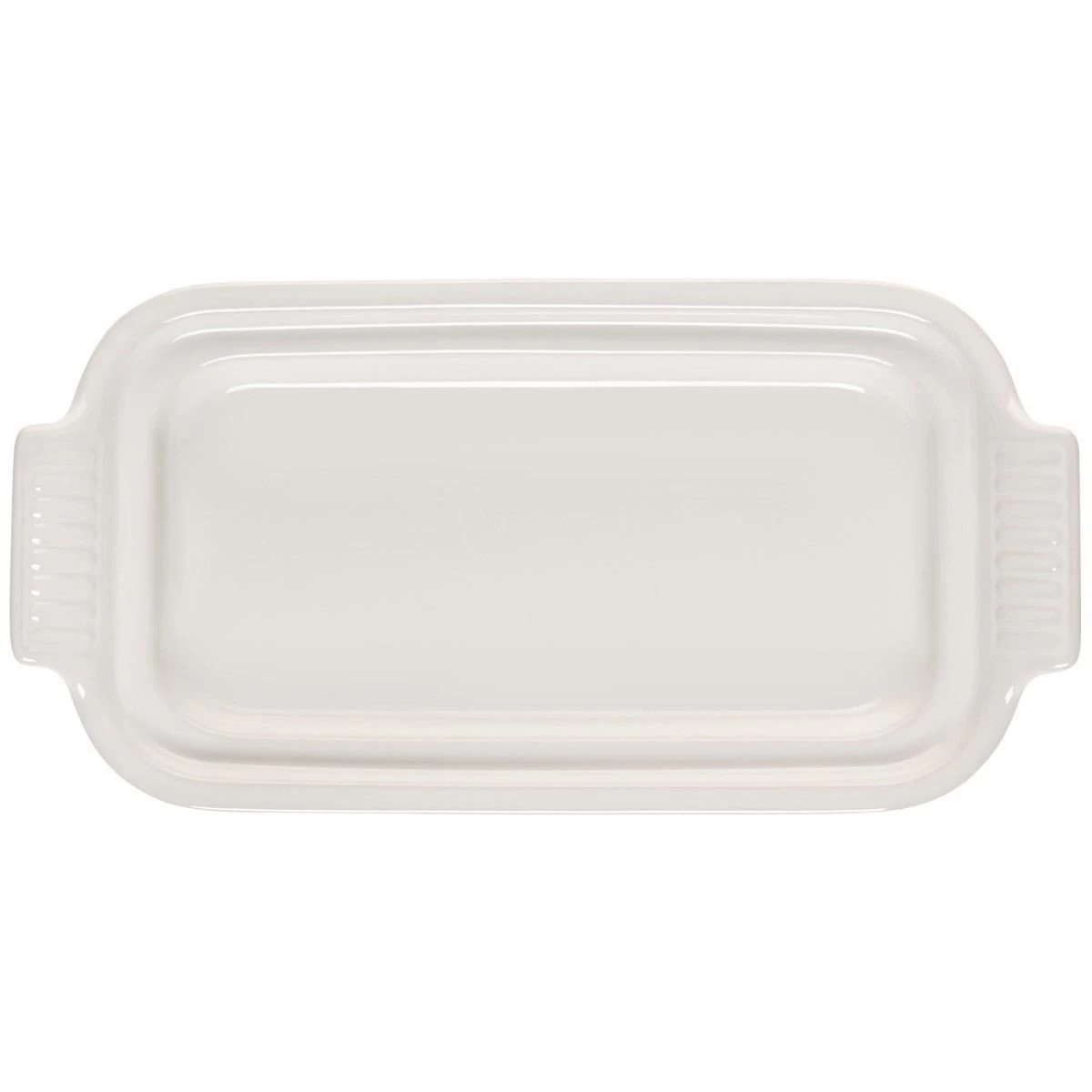 Keep your butter ready for foods from pancakes to baked potatoes on the countertop or dining room table with the Le Creuset Heritage Butter Dish in White! This butter dish is a slightly smaller version of the original Heritage Butter Dish, as it holds only one stick of butter. However, it is still made of the same durable stoneware that blocks moisture to prevent cracking, crazing, and rippling, which allows you to set it anywhere from the refrigerator, countertop, or dinner table for accessibility. It features gorgeous scalloped side handles and a looped top handle that are consistent with the Heritage design language. Due to its durability, you may let others serve themselves from the dish without worrying about scratching or scuffing the stoneware with knives and other serving utensils. Once the butter is gone, you may set both the lid and base in the dishwasher for easy cleanup. You “butter” believe it—the new Le Creuset Heritage Butter Dish will create a beautiful accent for your kitchen and dining room while keeping your butter safe and ready to use!