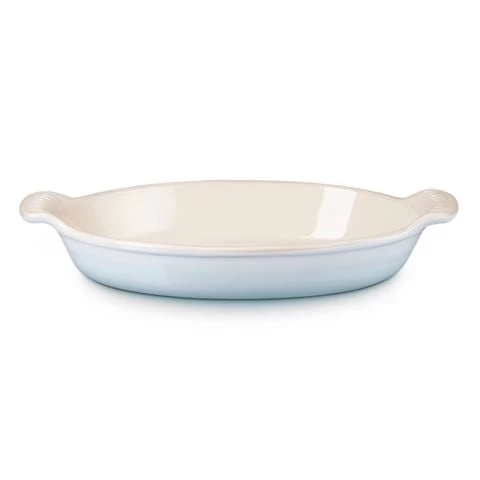 Discover your new cooking essential. This stoneware oval dish belongs to Le Creuset’s Heritage Series – a classic collection inspired by the original French designs presented in 1931. It’s ideal for marinating, gratinee, roasting, and serving. The oval shape is enhanced by the curved handles