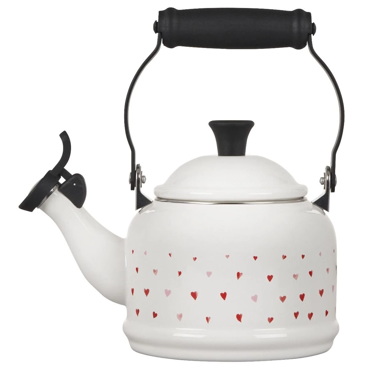 Le Creuset L’Amour Collection 1.25 Qt. Demi Kettle (White With Heart Applique) Features: