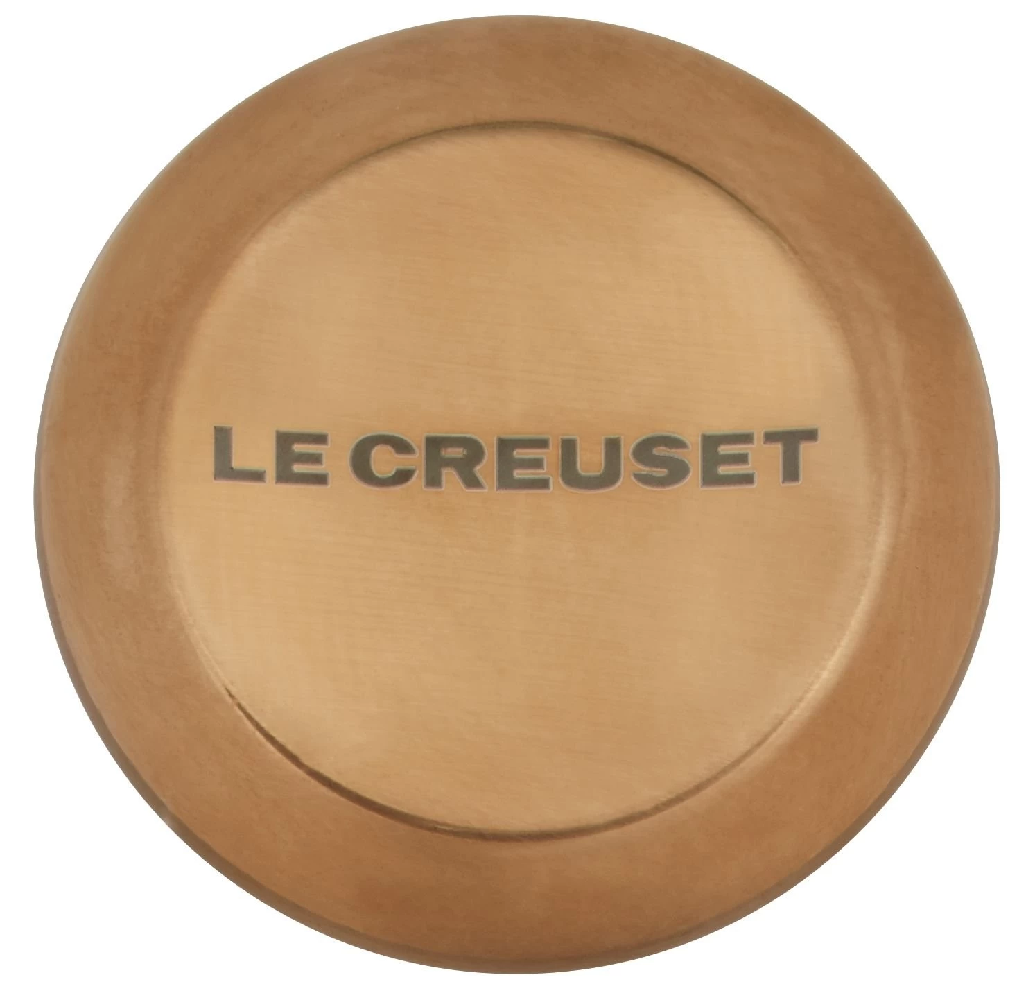 Update your faithful Le Creuset cookware with the Le Creuset Signature Gold Copper in Large. This replacement Le Creuset knob comes straight from the source at Le Creuset Cookware of France and is guaranteed to fit your prized and well-used Le Creuset cookware pieces. The Le Creuset Signature Phenolic Knob measures 2.25″ in size and fits various sizes of dutch ovens, braisers, and saucepans (see below). Le Creuset’s Signature Copper Knobs are made from durable stainless steel to provide longevity and a timeless look. While the knob will handle all temperatures from any stovetop, it is also safe for all cooktops and dishwasher use.